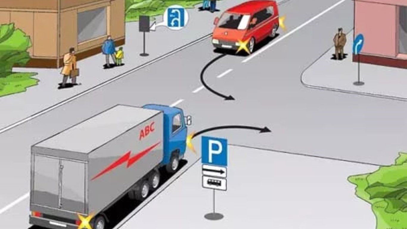 Водій вантажівки, заїжджаючи до зони паркування повертає праворуч, а водій мікроавтобуса — ліворуч.
