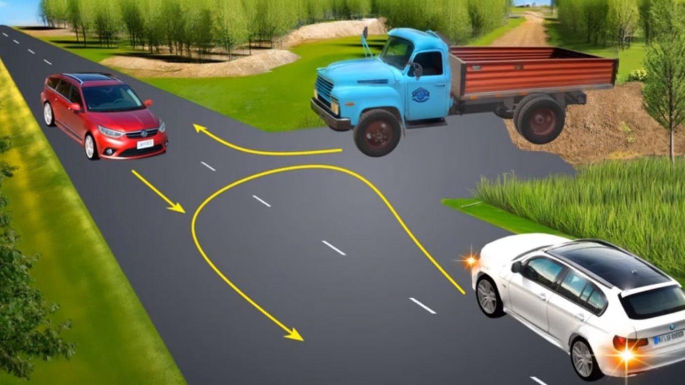 Тобто, водій вантажівки знаходиться на другорядній дорозі, а значить проїде це перехрестя останнім.