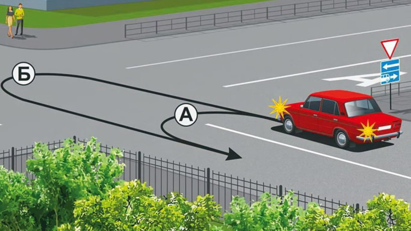 Этот знак обязывает водителя красной машины пропустить все транспортные средства, двигающиеся по главной дороге.
