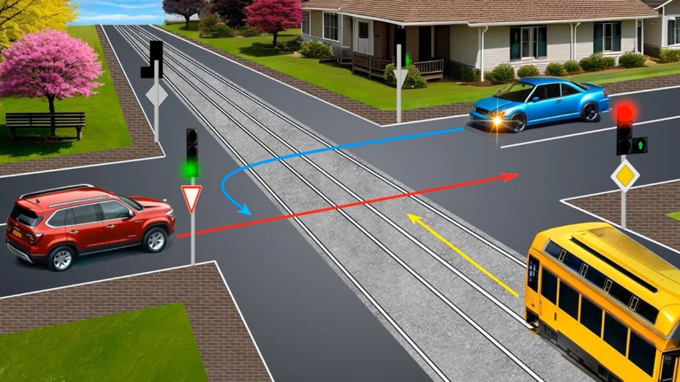 Известно, что при равных условиях трамвай имеет преимущество, но в изображенной ситуации условия далеко не равные.