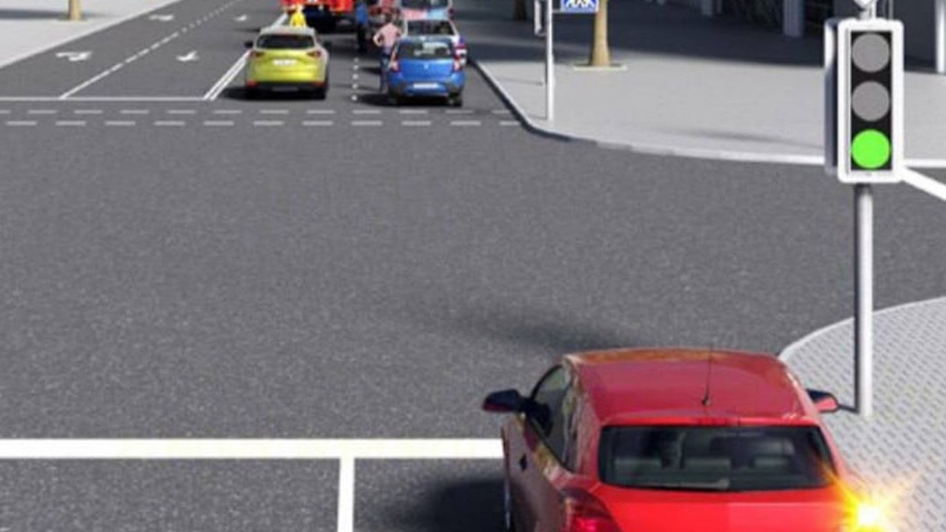 Якби водієві потрібно було їхати прямо, тоді довелося б зачекати.
